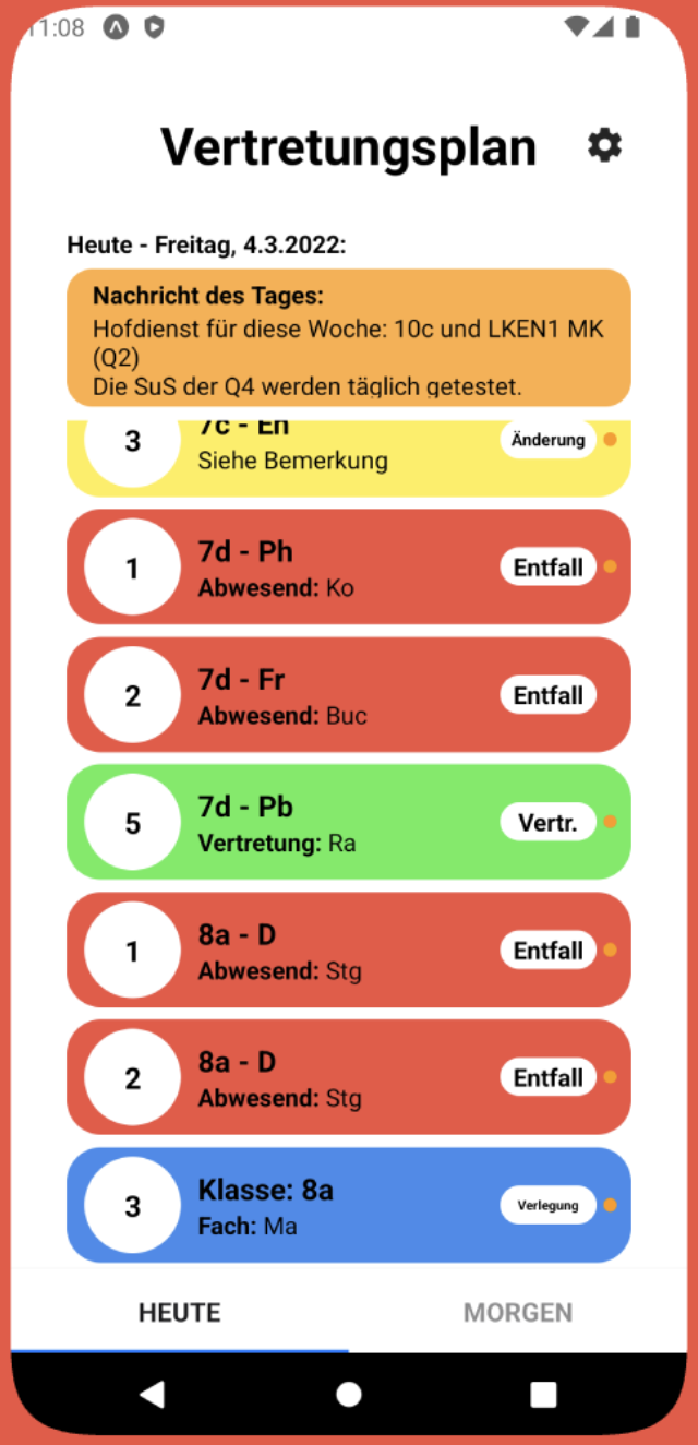 This is a substitution plan made for the students of my former school. It was released to the Google PlayStore for every one free of charge. It is not supported anymore.